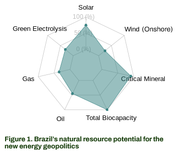 Brazil has the critical minerals, renewables resources, biocapacity, and manufacturing base to be a major producer and exporter of energy, materials, and technology. Brazil also holds significant oil & gas reserves and expertise, which can contribute during the transition, without a need for further expansion.
